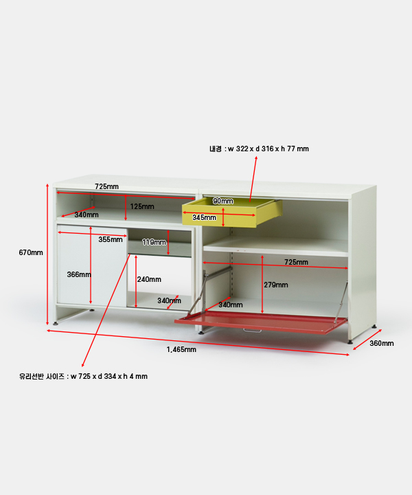 w 1,465 x d 360 x h 670 mm
