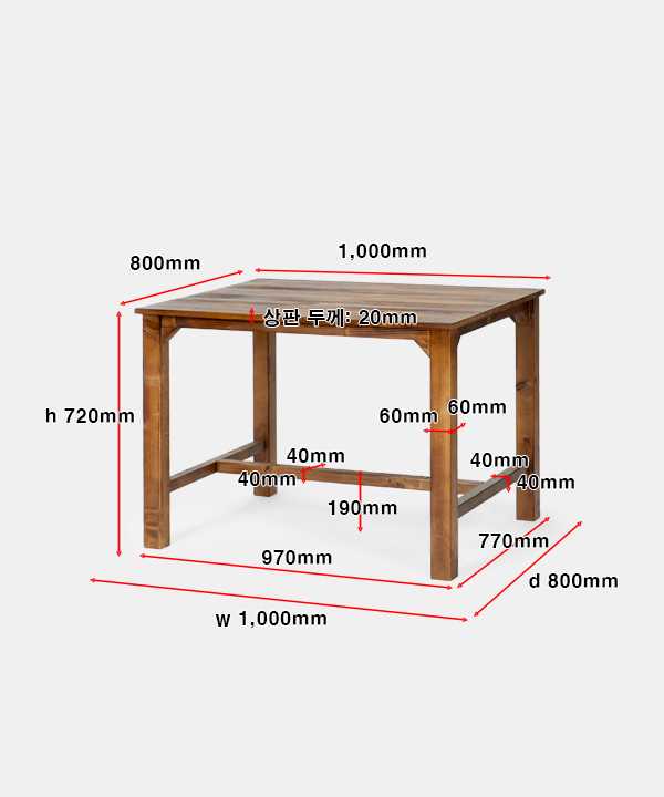w 1,000 x d 800 x h 720 mm