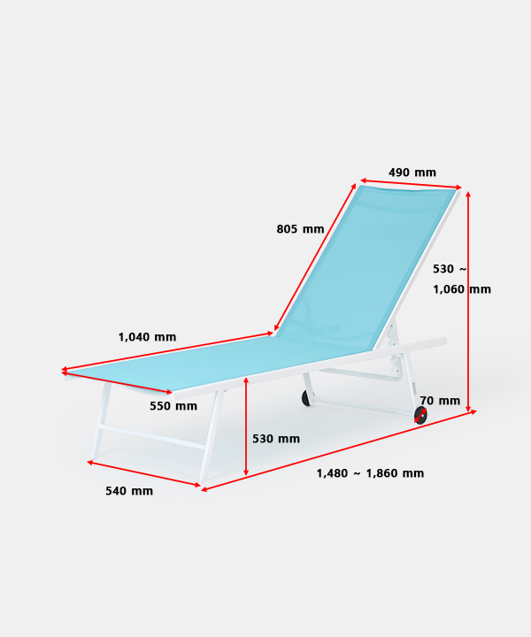 w 550 x d 1,480~1,860 x h 530~1,060 mm