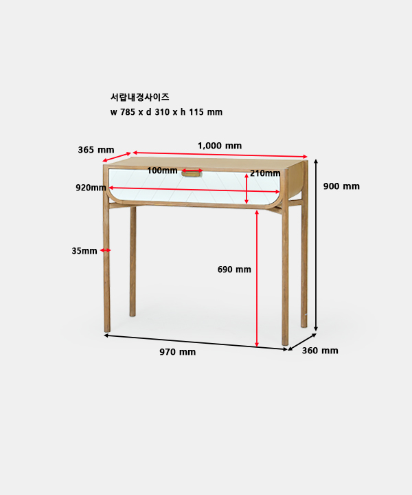 w 1,000 x d 365 x h 900 mm