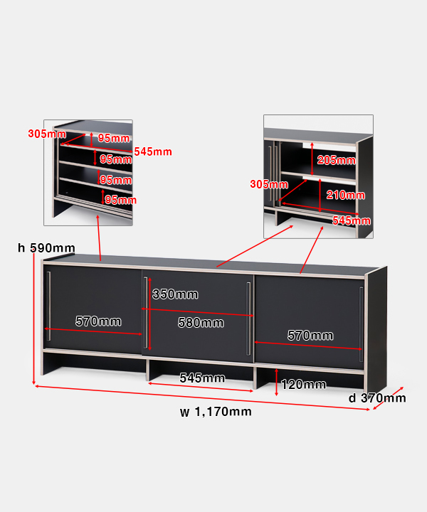 w 1,170 x d 370 x h 590 mm