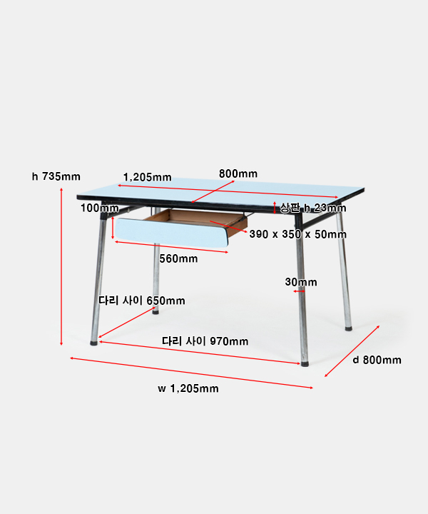 w 1,205 x d 800 x h 735 mm