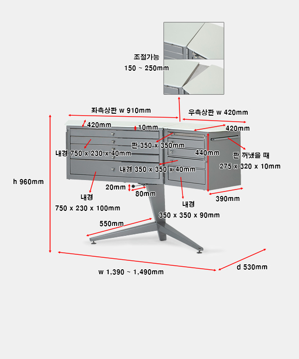 ※ 수납장 상판 2개는 분리출고됩니다.