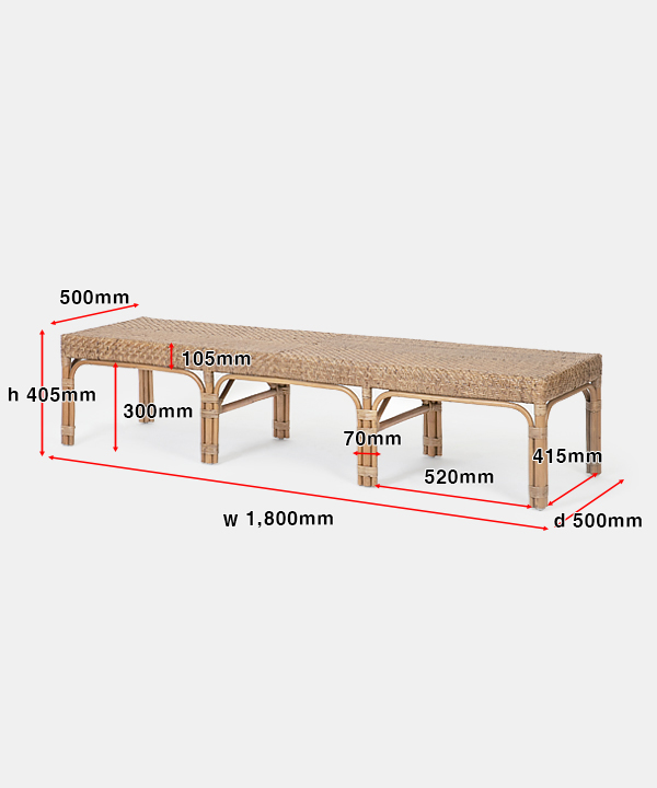 w 1,800 x d 500 x h 405 mm