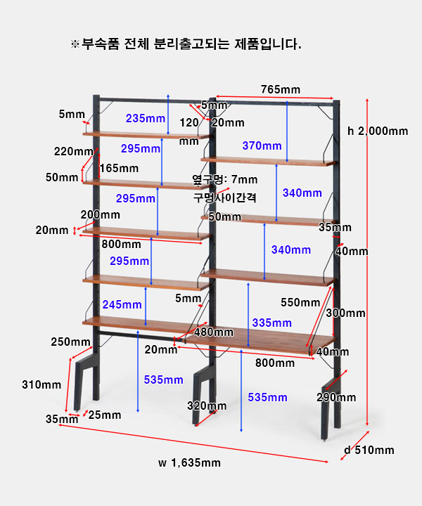 w 1,635 x d 510 x h 2,000 mm