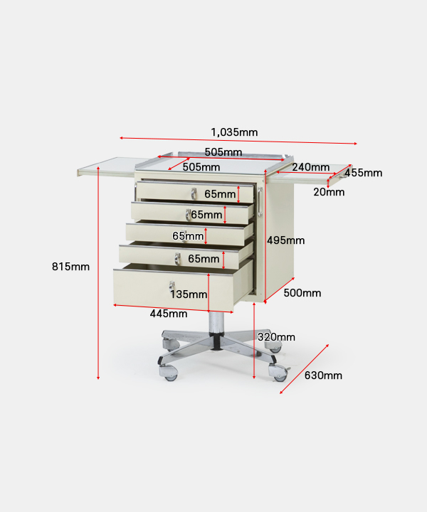 Size w 505~1,035 x d 630 x h 815 mm
