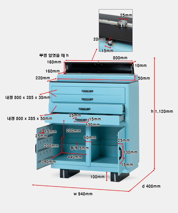 Size w 940 x d 400 x h 1,120 mm 1960년대