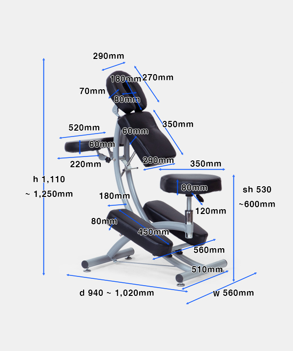 w 560 x d 940~1,020 x h (sh 530~600) 1,110~1,250 mm