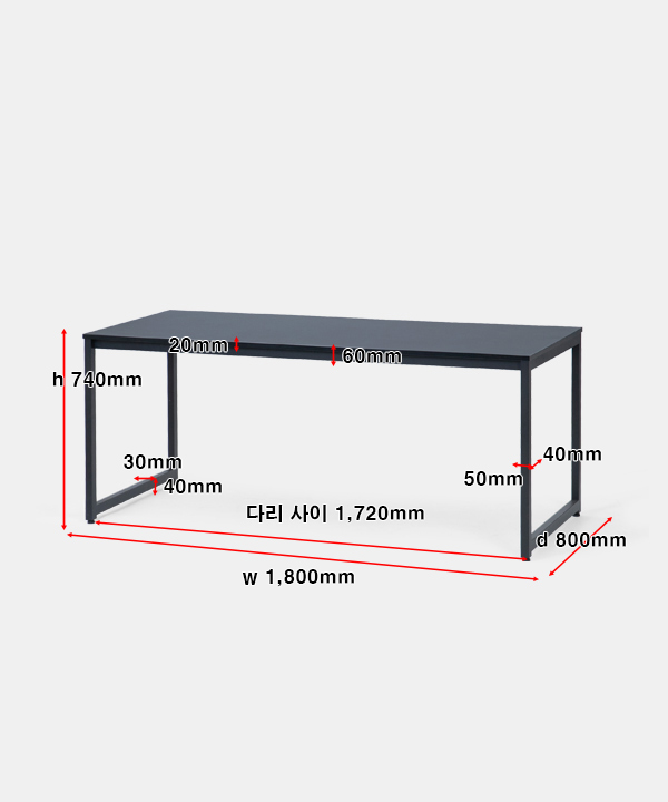 w 1,800 x d 800 x h 740 mm